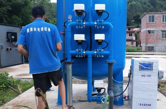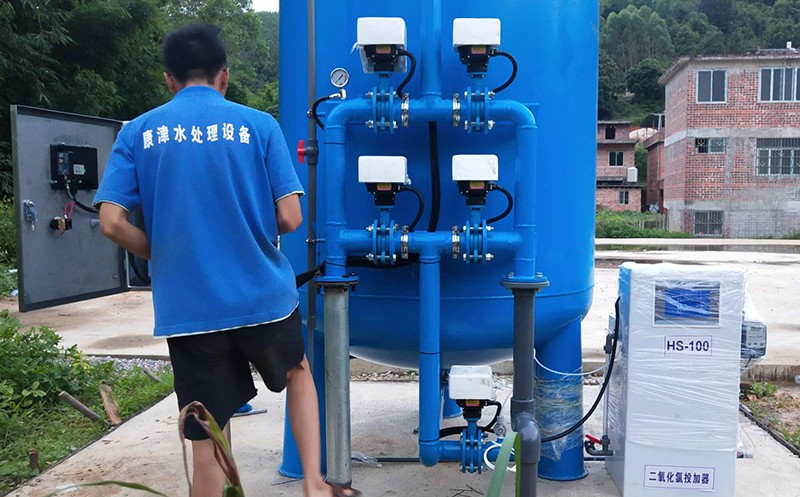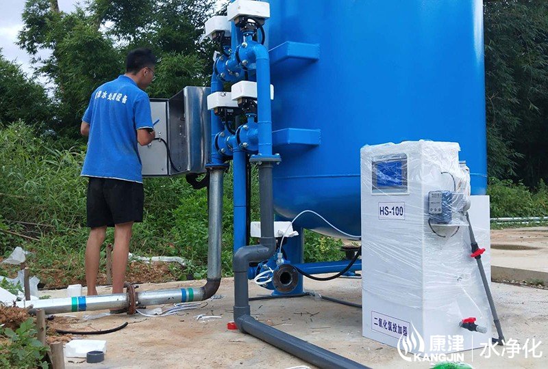 項目名稱:武鳴那致地下水凈化工程 設備名稱:10噸壓力式一體化凈水設備 工藝流程:地下水-石英砂過濾器-二氧化氯消毒 產品型號:KJ-DF-1500...