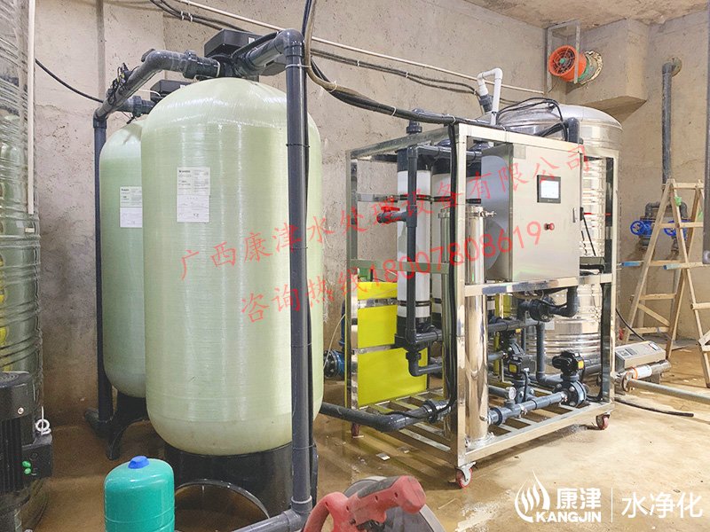 10T/H超濾水處理設備,每天產水240噸左右,業主是廣西大藤峽葛洲壩,產出的凈水用于漁業養殖使用。超濾水處理設備過濾精度為0.005到0.01微米范圍內,可有效去除水中的微粒、膠體、細菌、熱源及高分子有機物質等。設備廣泛應用于礦泉水制造、食品和醫藥生產、城市中水會用等領域。設備工藝流程。原水來自于大壩,進入保溫水箱后經高壓泵進入預處理系統,根據業主水質情況,預處理部分我們推薦的是砂濾和錳砂濾,主要是為了軟化水質。預處理產水接著進入精密過濾器,主要是PP棉過濾工作,PP棉更換成本低,一般3個月左右檢查一次,看情況更換。超濾是一種以篩分為分離原理,以壓力為推動力的膜分離過程,所以超濾前需要增加壓力泵。產出的凈水到水箱后由業主的抽水泵供應到用水點。在這里說下,我們看到成套設備有一個黃色的桶,它是負責給超濾組件加藥清洗用的,及時清理超濾膜內的雜質,保證膜元件的使用壽命。