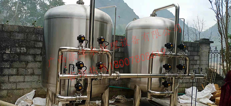 工藝流程:地下水-絮凝投加器-石英砂過濾器(二級過濾)-二氧化氯加藥器-凈水池
