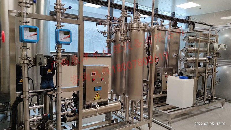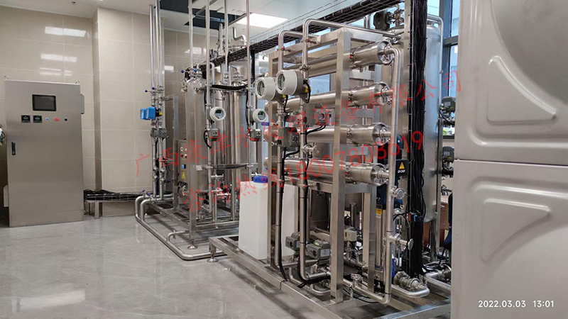 工藝流程:原水箱-原水泵-石英砂過濾器-活性炭過濾器-精密過濾器-紫外線殺菌器-增壓泵-反滲透膜組-加藥系統-無菌水箱-紫外線消毒殺菌器-除菌過濾器-變頻恒壓供水系統-用水點