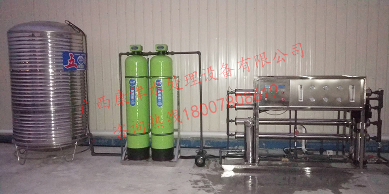 工藝流程:原水箱-原水泵-石英砂過濾器-活性炭過濾器-精密過濾器-反滲透設備-水池